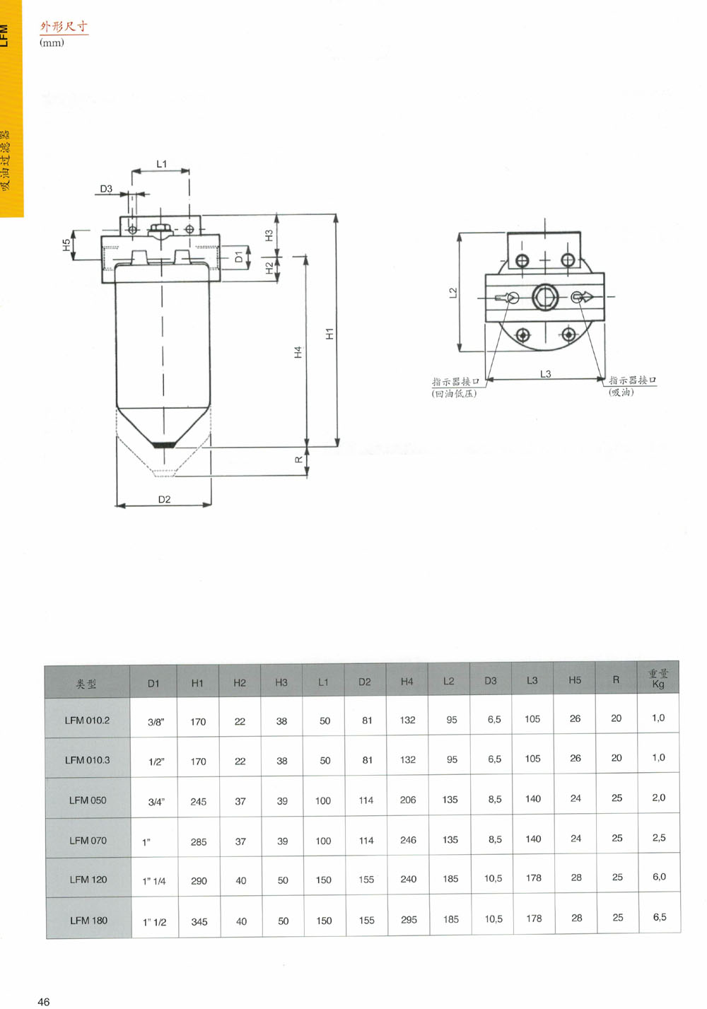 索菲瑪吸油/低壓管路過濾器LFM系列